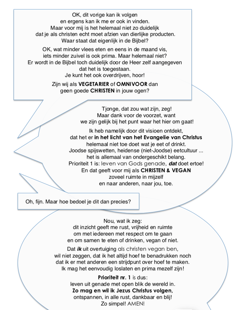 Vegan Church heeft er een avond aan gewijd en enkele gedachten wil ik hier met jou delen. Want wij menen dat er in dit visioen iets anders centraal staat dan een (her)nieuw(d) voedingspatroon, zoals hierboven wordt geopperd.